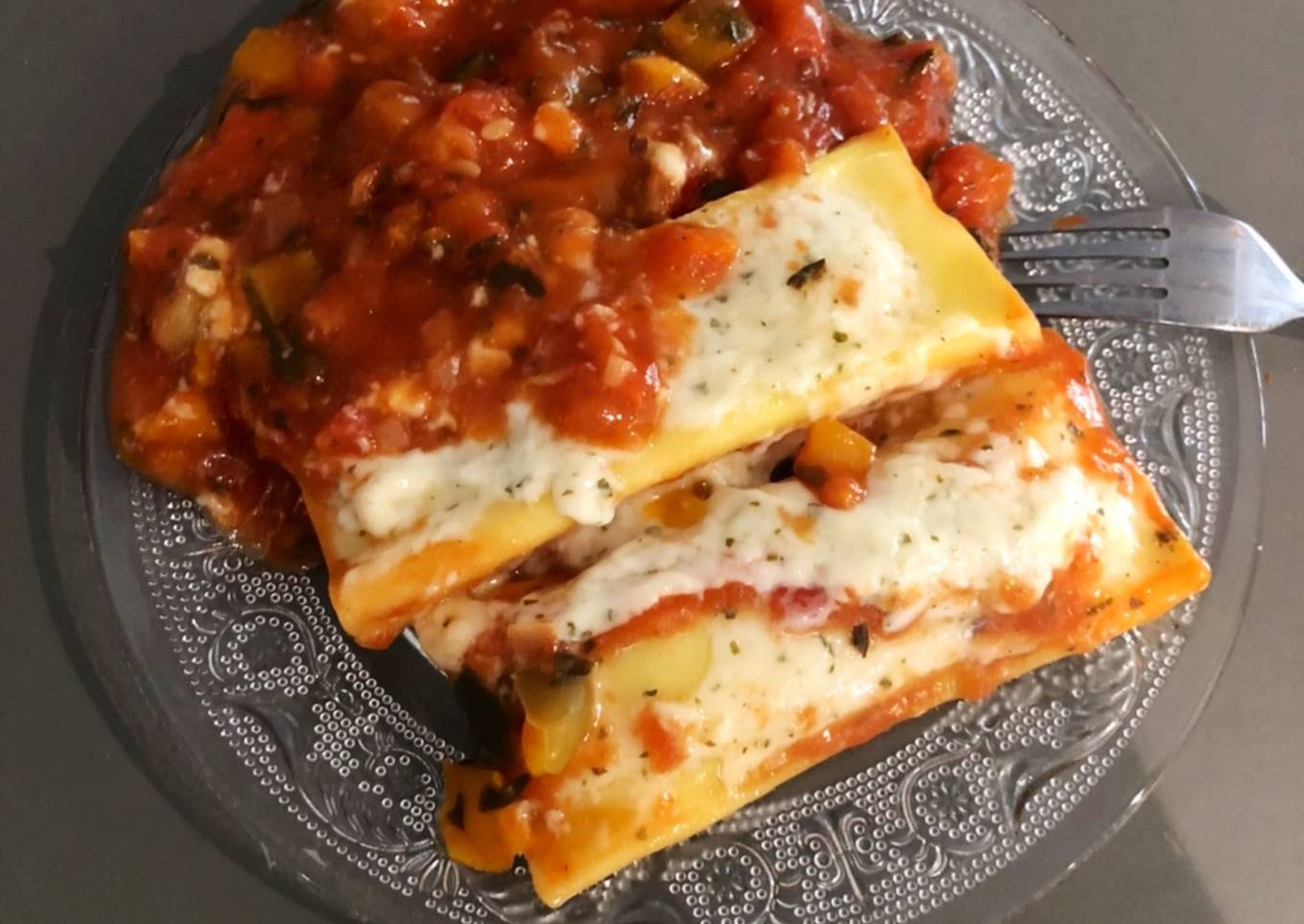 - Composer les cannellonis en étalant sur chaque plaque de la sauce tomate et de la préparation.
