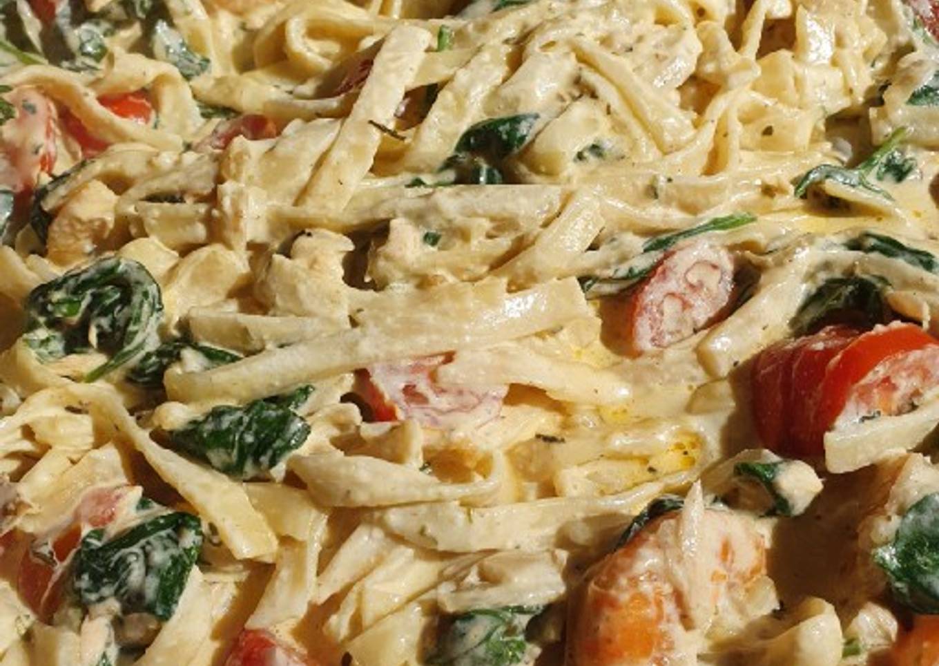 - Couper les oignons les faire revenir à la poêle avec l'huile d'olive. Ajouter les crevettes décortiquées et le saumon. Laisser dorer et retourner de chaque côté. Ajouter les tomates cerises coupées en 2 ou en rondelles si trop grosses et les feuilles d'épinard. Émietter le saumon une fois qu'il est cuit. Ajouter la crème, l'ail et le persil hachés finement, l3 basilic, la ciboulette, les épices et le parmesan. Mélanger et laisser mijoter quelques minutes.