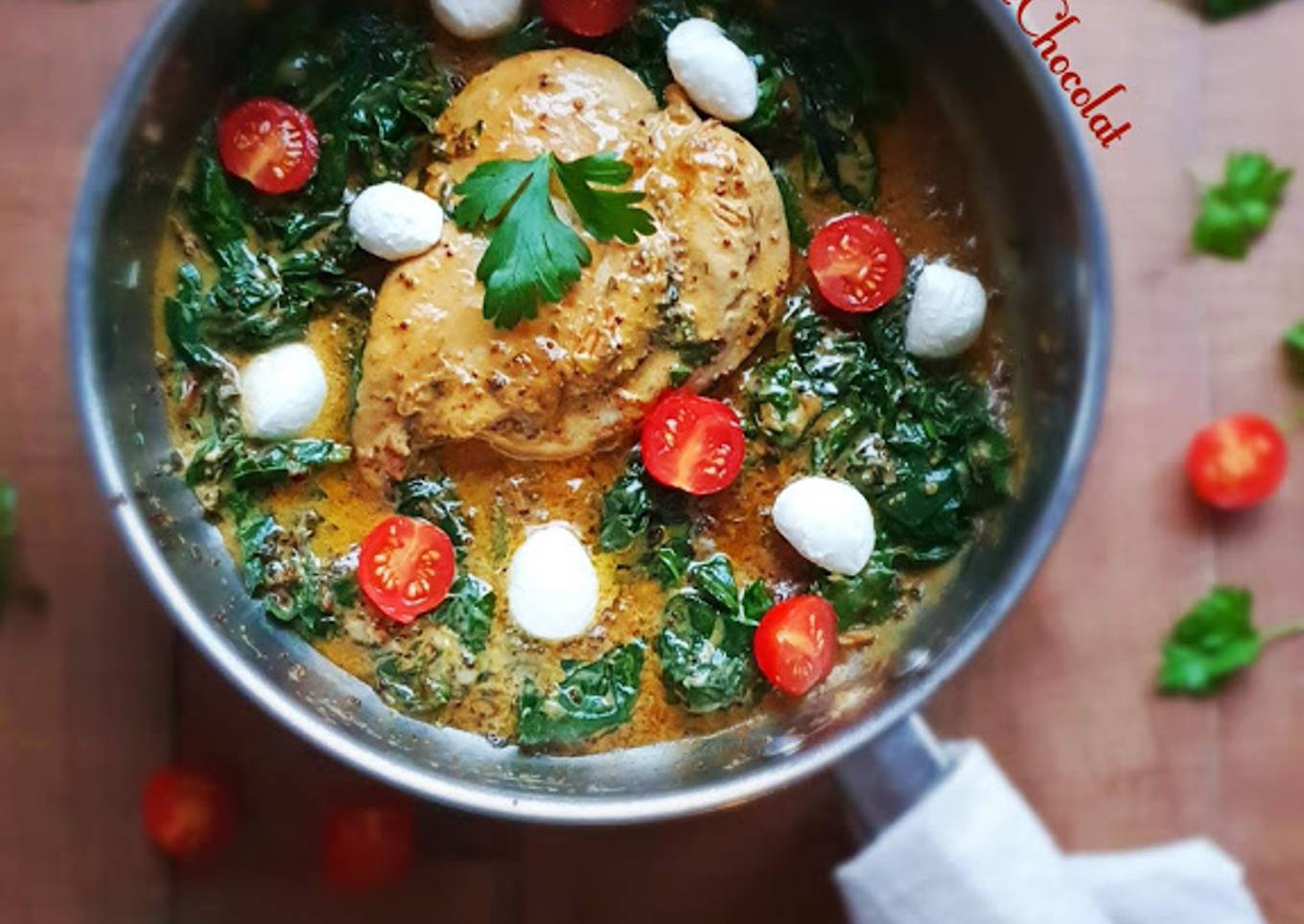 Instructions to make to make Poulet a la moutarde et aux épinards