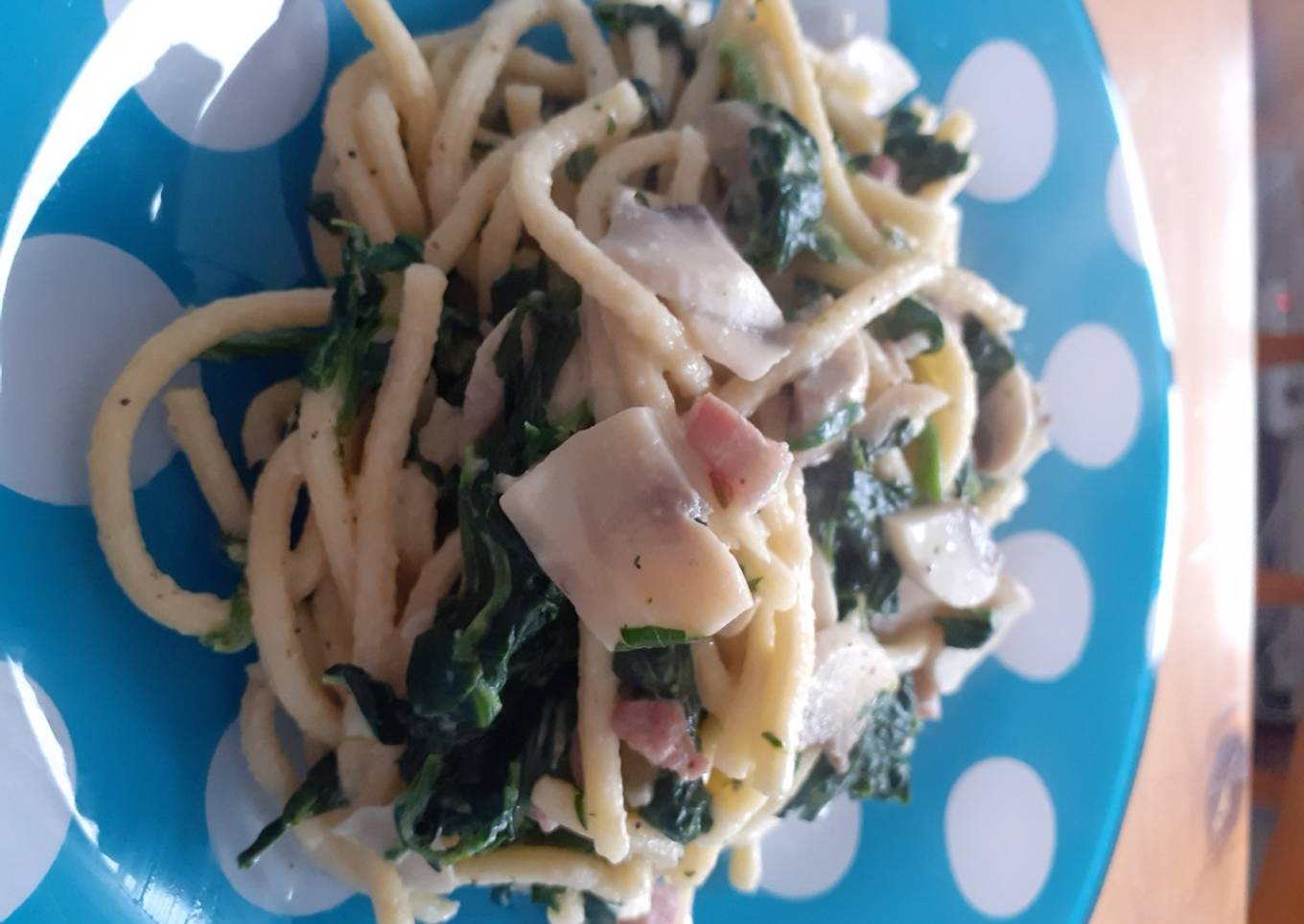 Spatzles lardons épinards champignons