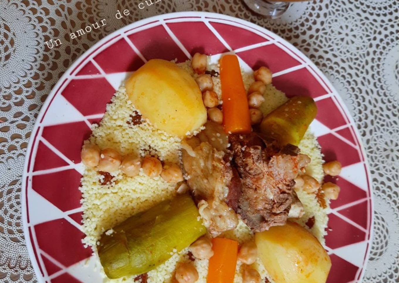 Coucous agneau légumes raisins secs sauce rouge 🥣