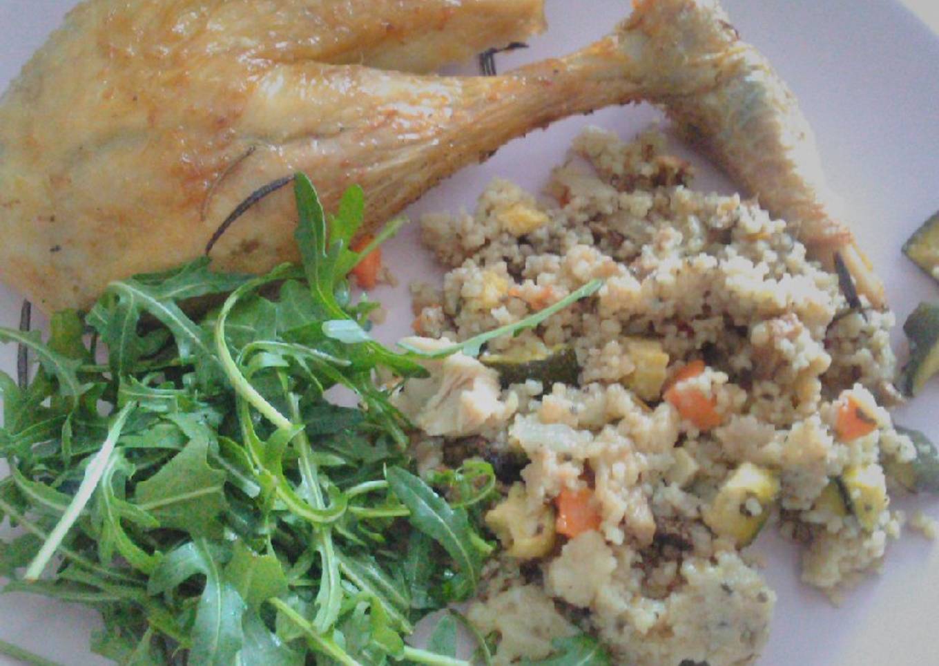 - Couper en dés tous les légumes. Ail, oignon, herbes de Provence. Saler, poivrer. Ajouter le couscous et de l'huile d'olive. Bien mélanger