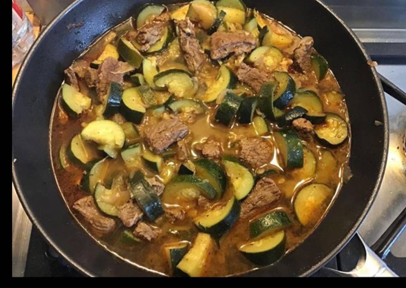Instructions to make to make Bœuf mijoté aux oignons courgettes et paprika