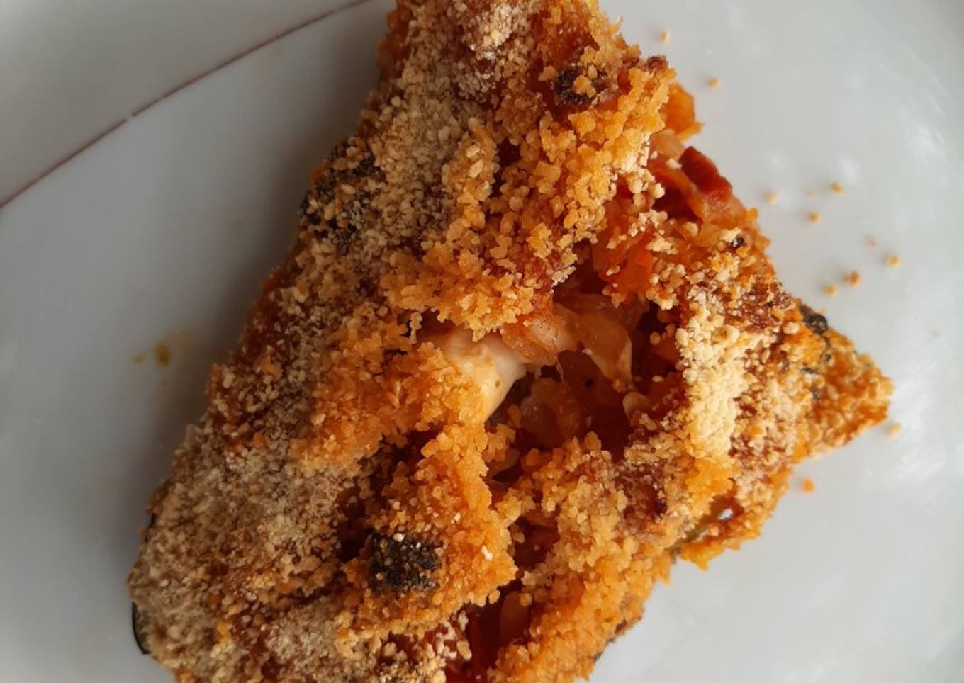 - Saupoudrer de chapelure puis verser un filet d'huile de noisette.