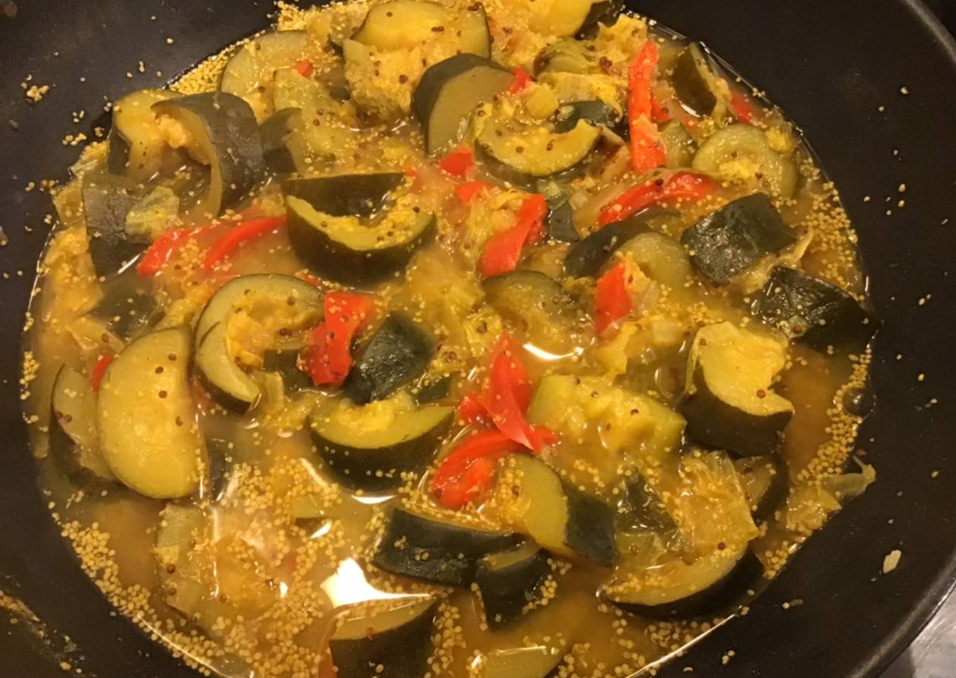 Poivrons courgettes et chou kale à la moutarde à l ancienne et curry