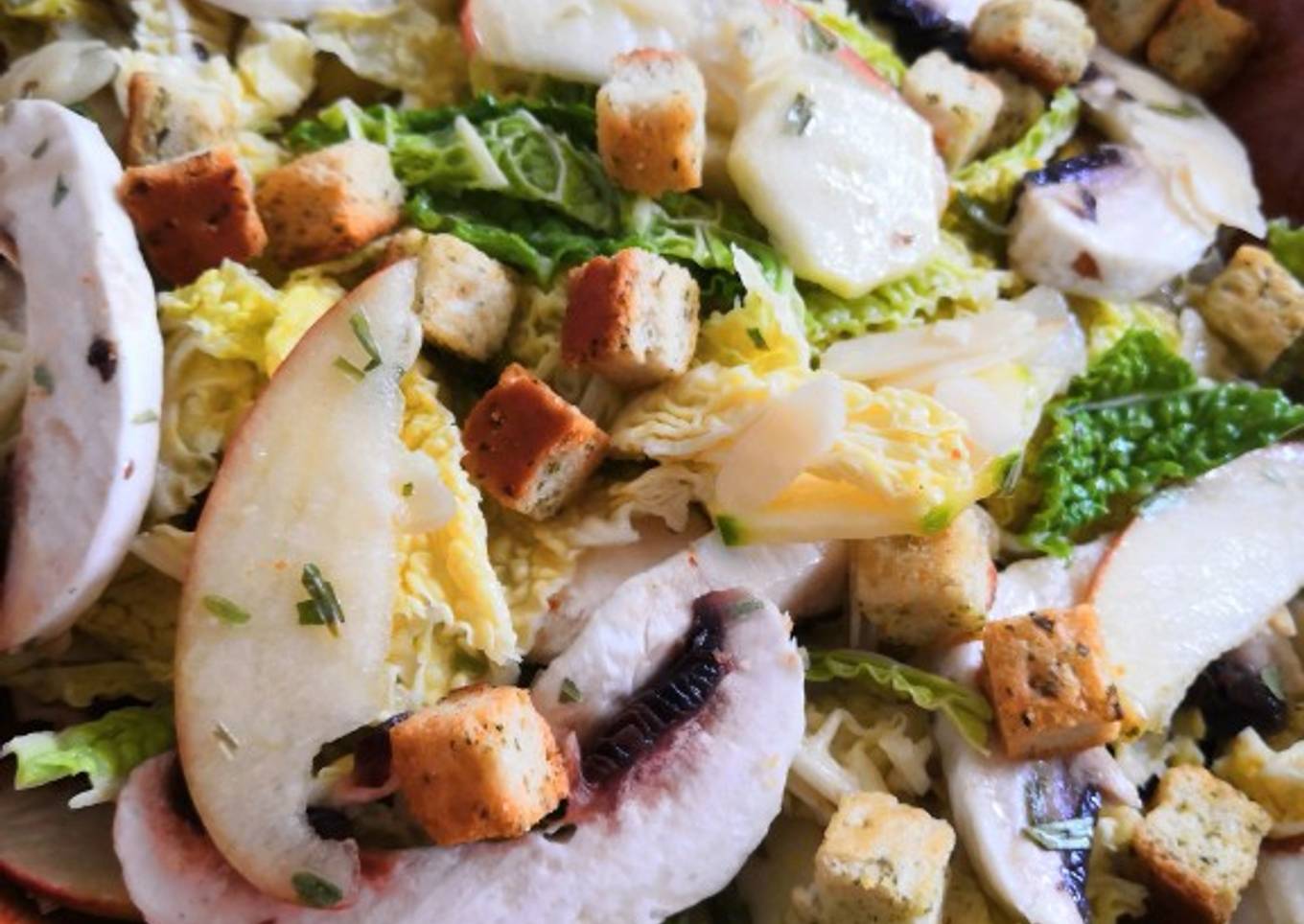 Salade de chou frisé cru, champignons de Paris, courgette, pomme
