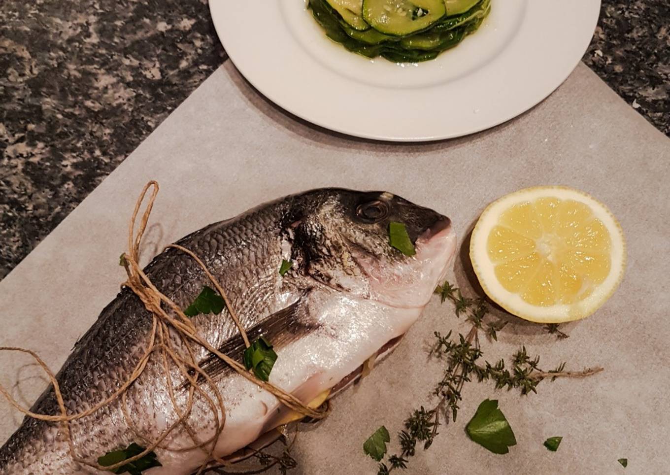 Hello everybody, it is Jim, welcome to my recipe site. Today, I'm gonna show you how to prepare a special dish, Daurade grillée au thym & courgettes. It is one of my favorites. This time, I will make it a bit unique. This is gonna smell and look delicious.
